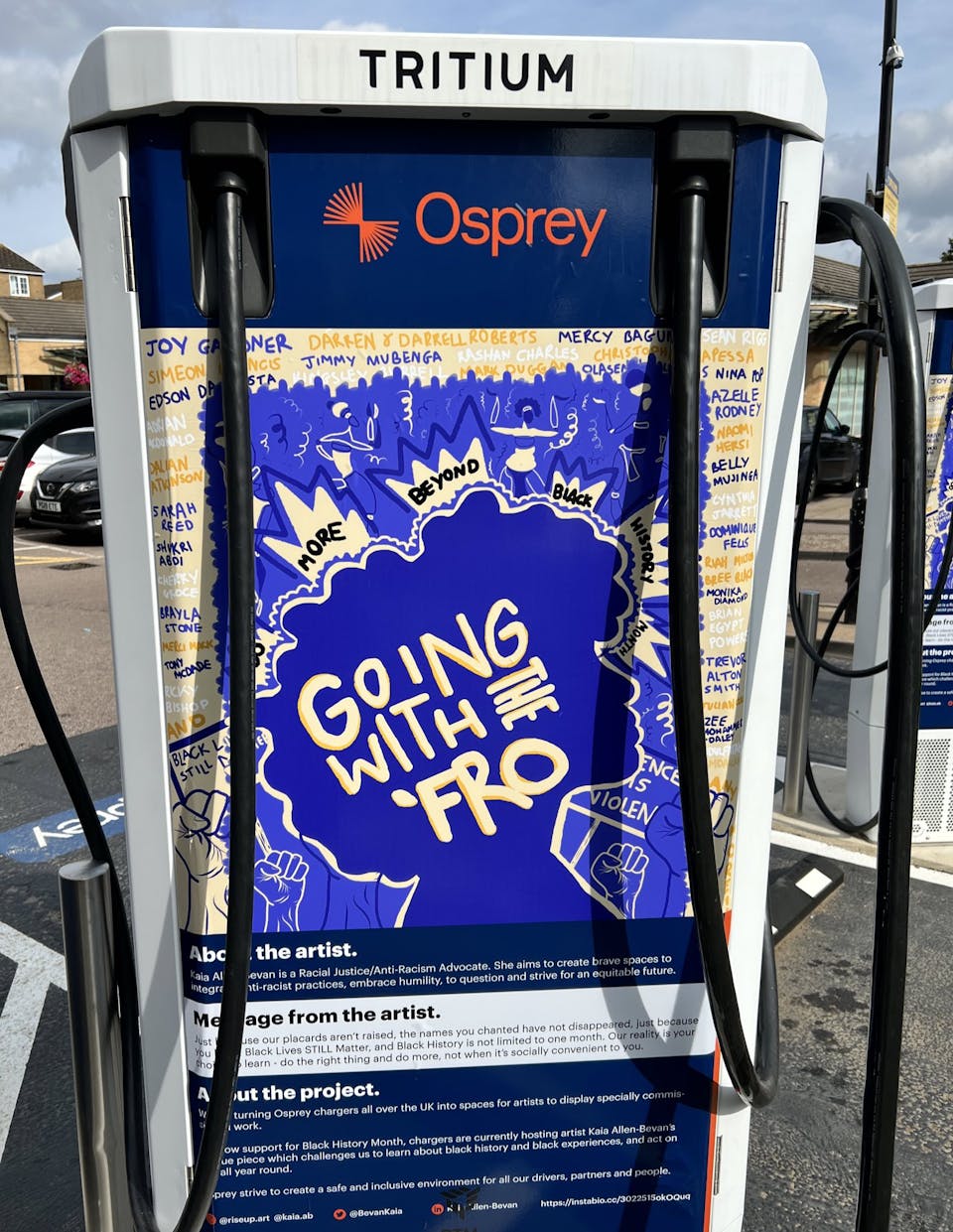 To show support for Black History Month, chargers hosted artist Kaia Allen-Bevan's unique piece which challenges us to learn about black history and black experiences, and act on this all year round.